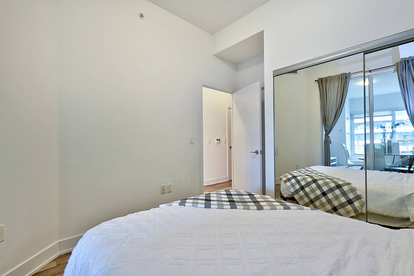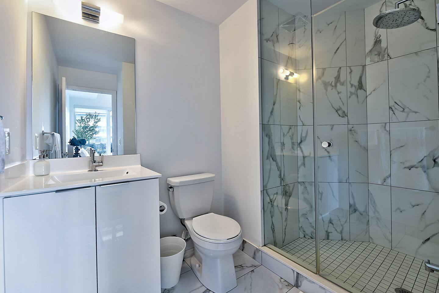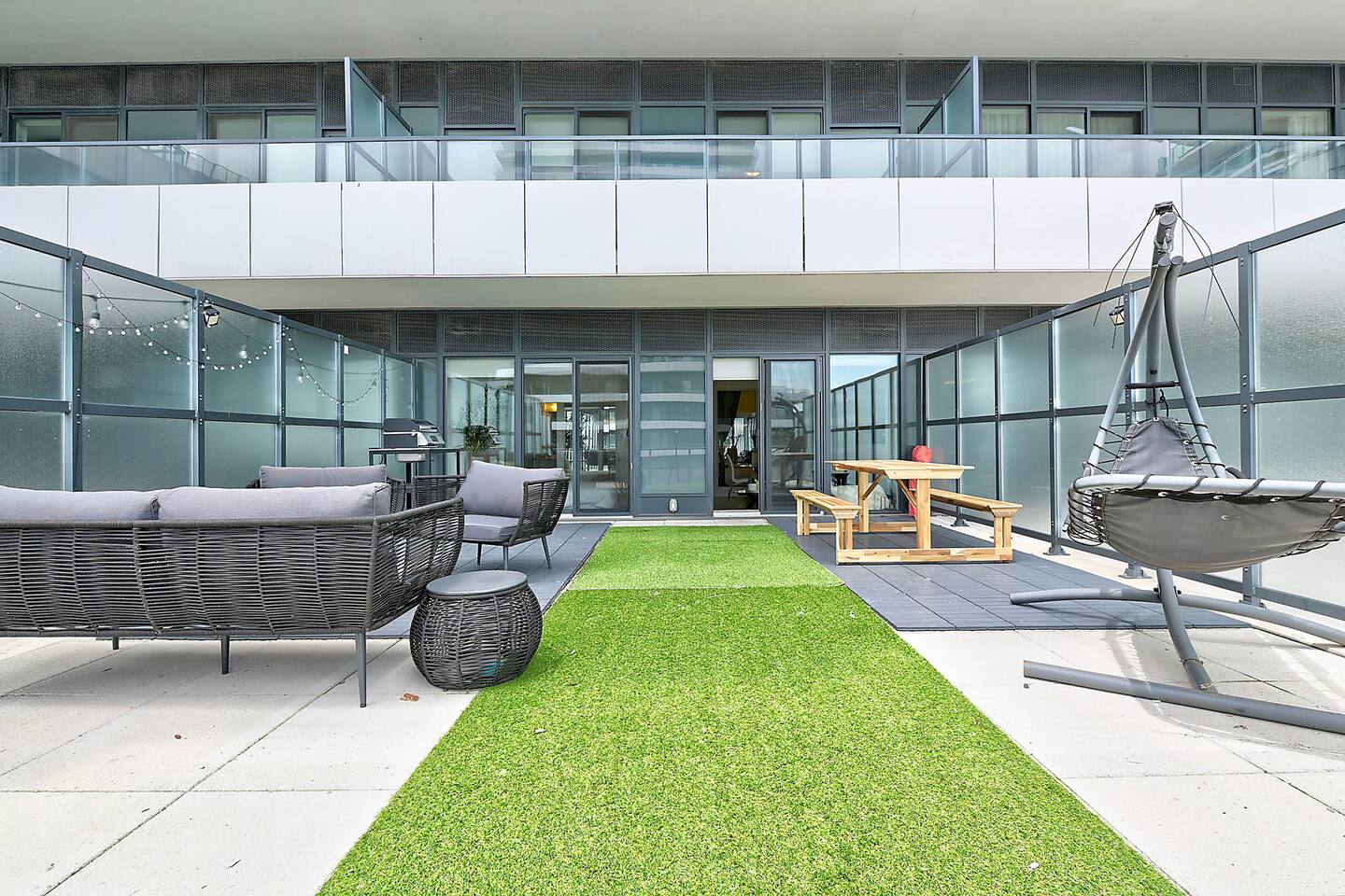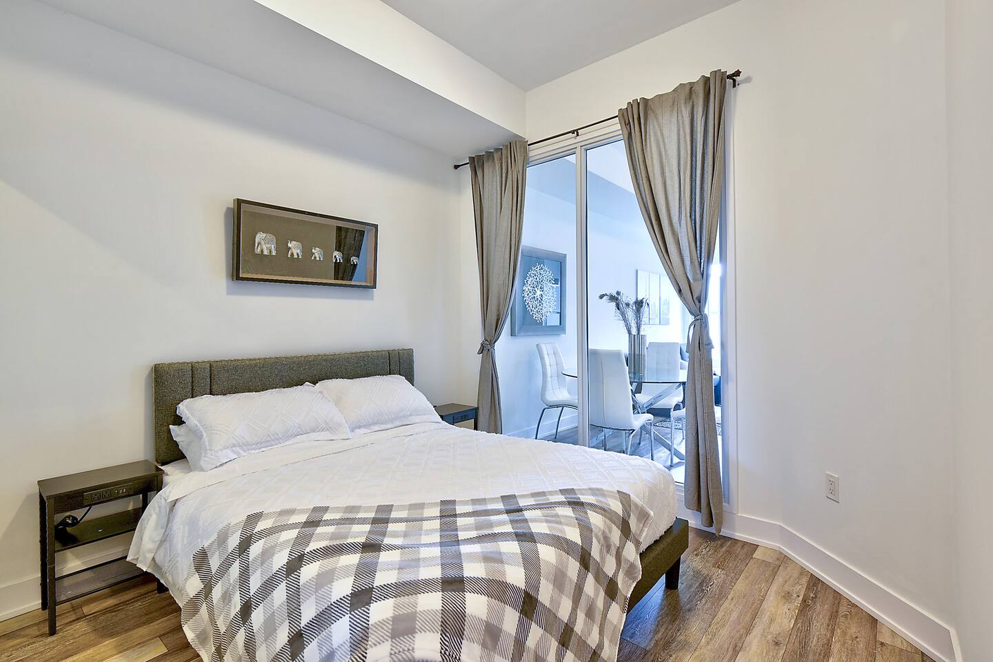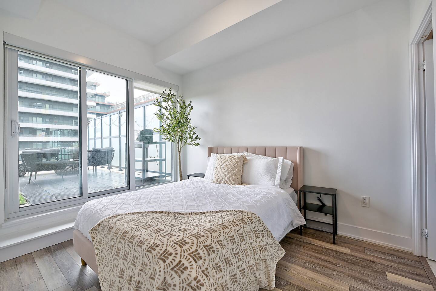 A modern and comfortable living space with all the amenities you need for a relaxing stay. The open-plan layout with soaring ceilings, allows for ample space and natural light and boasting stunning lake views and a mesmerizing panorama of Toronto's skyline. Savor your morning coffee or evening cocktails on the spacious private patio, which also features a BBQ for all your grilling pleasures. A parking spot is also included for your convenience. Our very comfortable sofa coverts to a queen pullout sofa allowing for up to 2 additional guests.