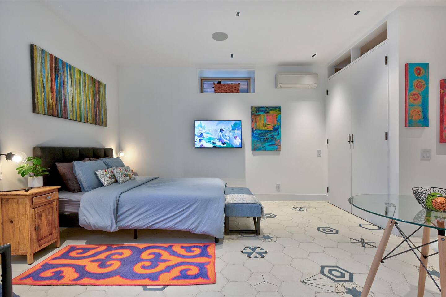 Nestled on the lower level on a quiet tree-lined street this newly built stylish studio apartment combines a carefully curated interior design , meticulous attention to detail, and eco-friendly building materials including a Berkey filtered water dispenser and Smart Lighting via Wiz App. The open-plan layout with soaring ceilings, allows for ample space and natural light. Pamper yourself in the lavish ensuite bathroom attached to the primary living area. A parking spot is also included for your convenience.