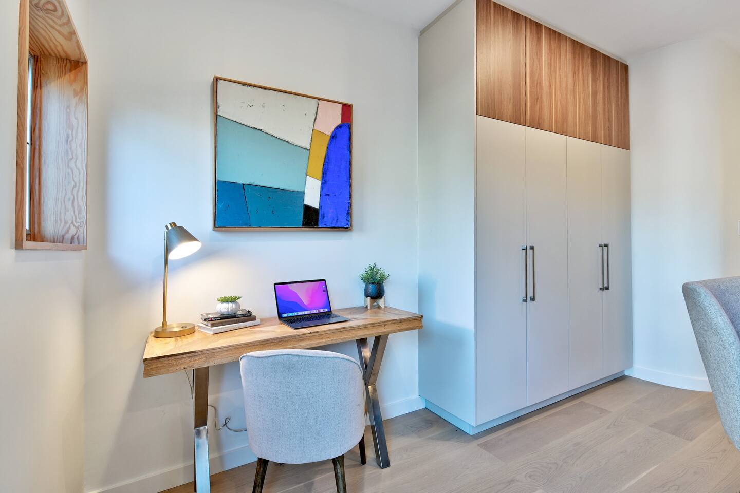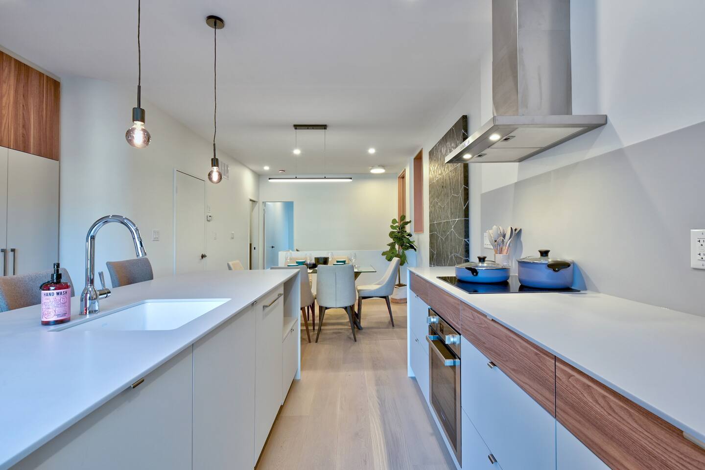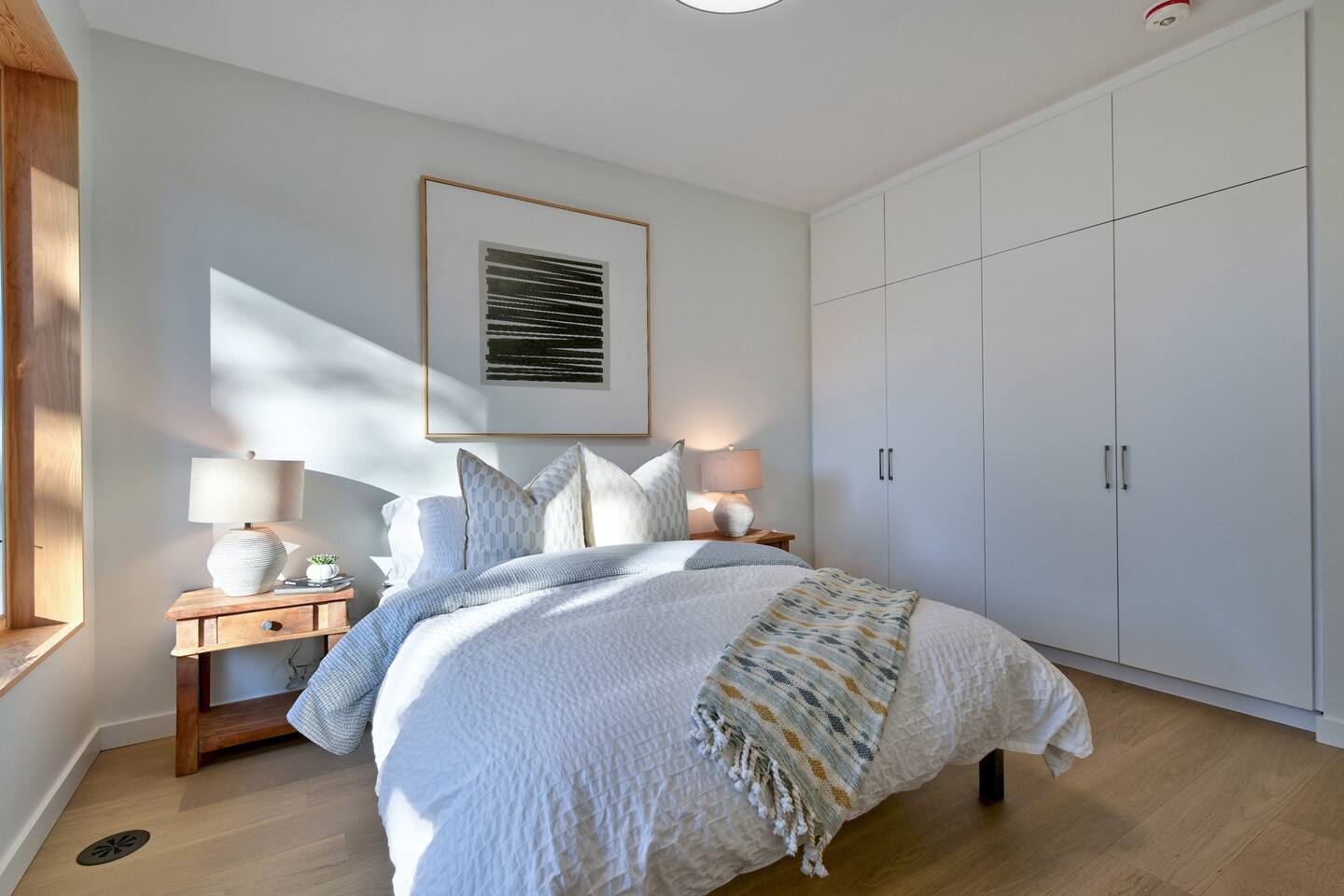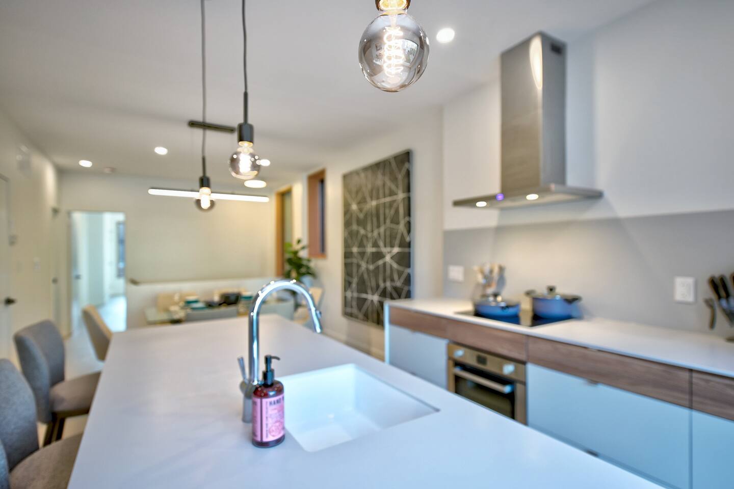 Nestled on the main level on a quiet tree-lined street this stylish 3 bed 2.5 bath home is the latest masterpiece of Creative Union Network Architects. The open-plan kitchen and dining space acts as the heart of the home complete with gorgeous wood floors, soaring beamed ceilings and an abundance of natural light. Perfect for entertaining, the kitchen is open and simply stunning with sweeping countertops, an abundance of storage and high-end appliances. The primary bedroom suite, with built-in storage and ensuite bath complete this floor along with a powder room and laundry. Walk downstairs from the split level entrance to polished concrete floors, two more ample bedrooms, storage and a spacious family living area that steps out in the green backyard.